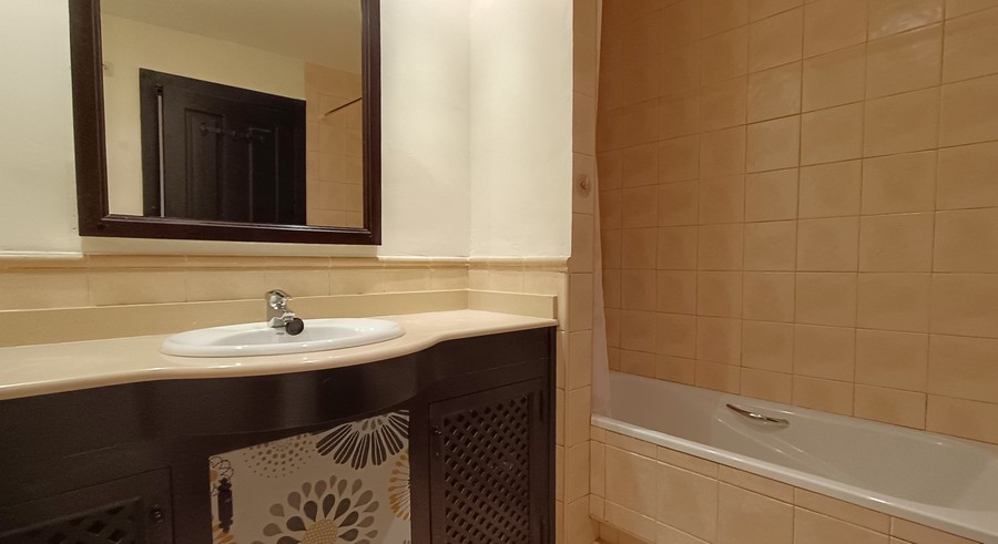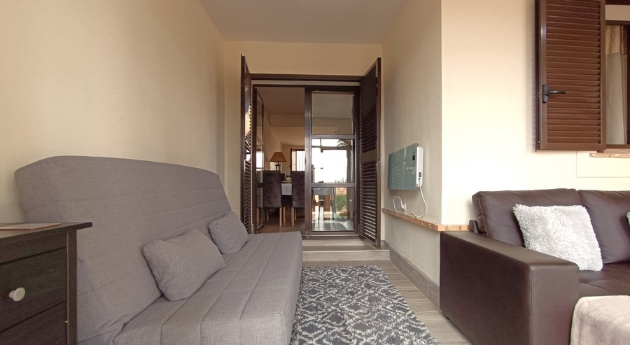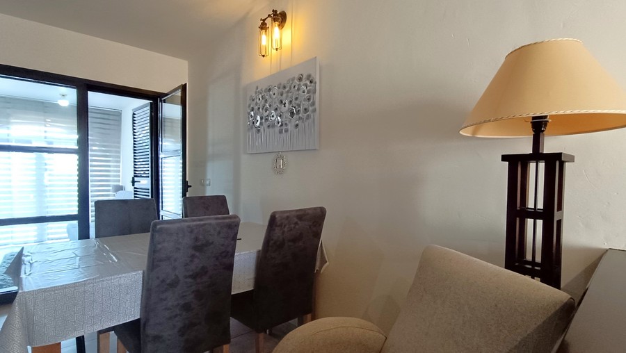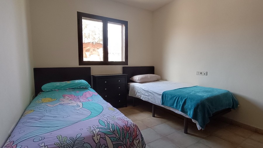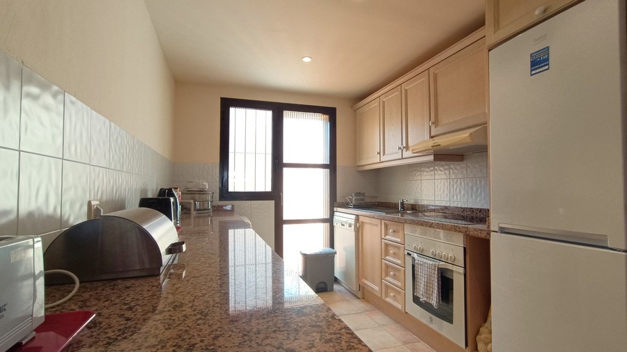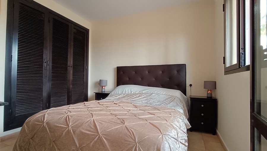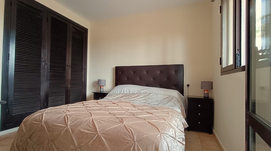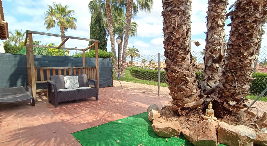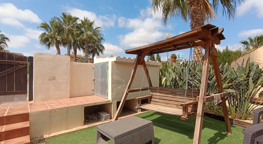 The villa has 2 large bedrooms and 2 bathrooms. Each bedroom has ample built-in wardrobes. The master bedroom has an en-suite bathroom. This spacious and practical villa is laid out on the ground floor. The lounge and dining room are spacious. and completed by a fireplace. The large kitchen comes fully equipped and has the benefit of granite countertops. The house is in a great state of conservation and features an exterior patio, along with under-stairs storage.