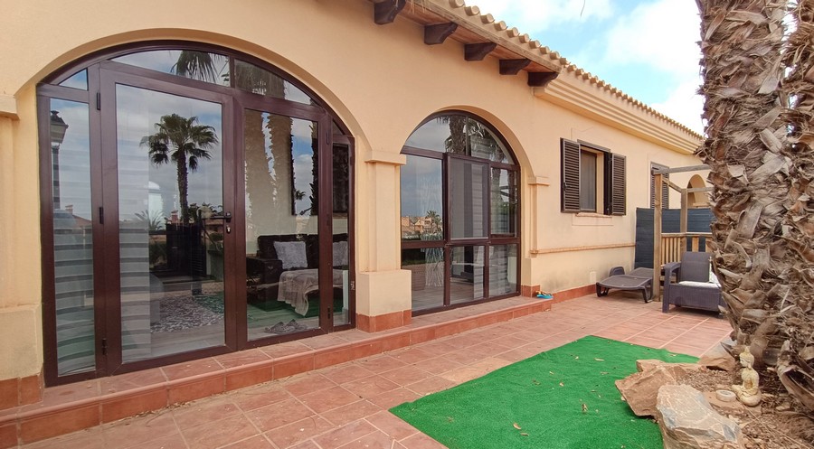 Superb villa model Coral located in the sought-after Phase 2 of Hacienda del Álamo Golf Resort. This spacious and very practical villa has a beautifully landscaped garden with easy maintenance, and a large community garden with swimming pool.