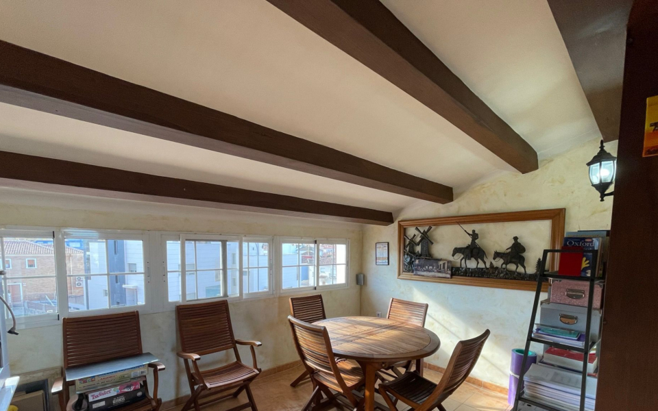 Next to the Ginés Ibáñez park, a house of approximately 350m2, it has a spacious living room, a very spacious kitchen with access to a 50m2 patio with a barbecue area and summer kitchen, a pantry, 3 bedrooms, 2 bathrooms, 1 toilet, a large attic covered with wood
