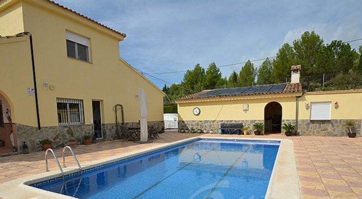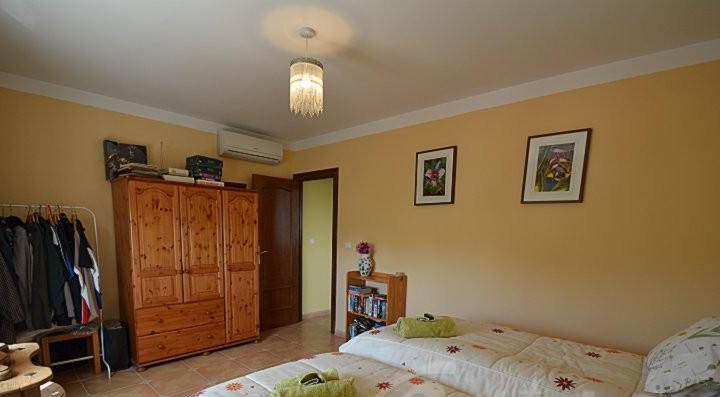 Comfort is a priority here, with hot and cold air-conditioning throughout. Solar panels provide energy-efficient hot water, and the heated pool, also powered by solar energy, allows for extended use year-round. The property benefits from mains electricity and water, as well as agricultural irrigation with its own water storage.