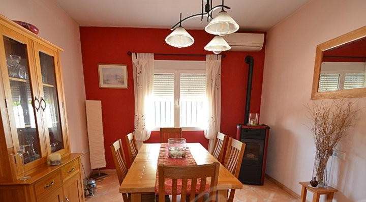 This stunning detached villa, located in the picturesque town of Cehegín in Northwest Murcia, sits proudly on a 5,000 m² plot that harmoniously blends landscaped gardens with flourishing fruit orchards. Spanning 240 m² across two spacious floors, this home offers five potential bedrooms, with one currently serving as an elegant formal dining room.