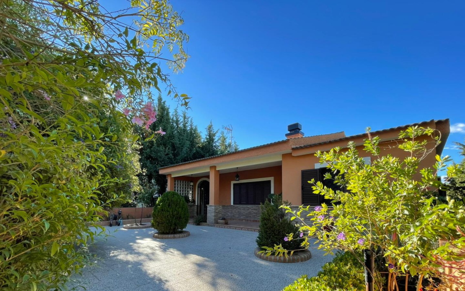 The main house has 3 spacious and bright bedrooms, 2 full bathrooms, a large living-dining room with a fireplace, a fully fitted and equipped kitchen with access to a large terrace with a laundry room, a storage room, a pantry, a dressing room.