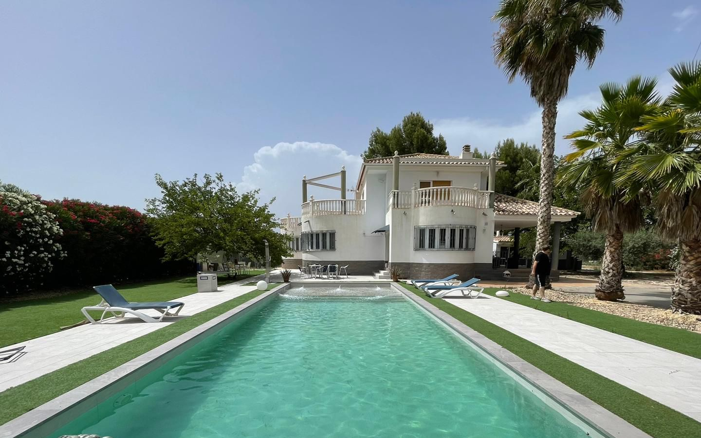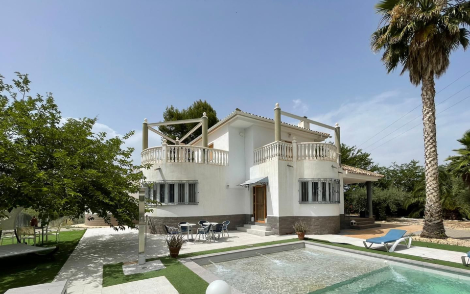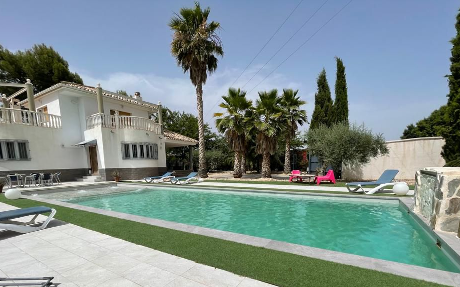 It has 5 bedrooms, a huge and beautiful swimming pool, attic, irrigated olive grove land (110 trees) and a stable for 4 horses. 450m2 built and 5400 m2 of fully fenced irrigated plot.