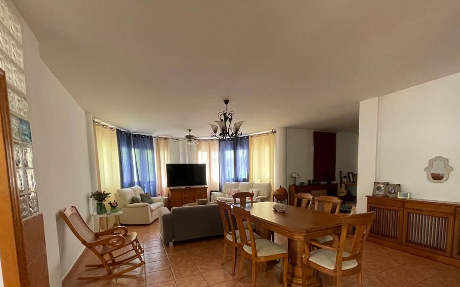 Upon entering the house through the exterior porch, you access a huge open-plan living-dining room-kitchen, large enough to accommodate a large family and friends, with an area that has a large wood-burning fireplace.