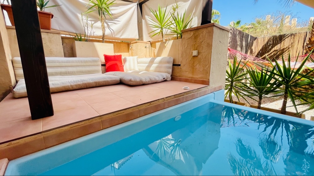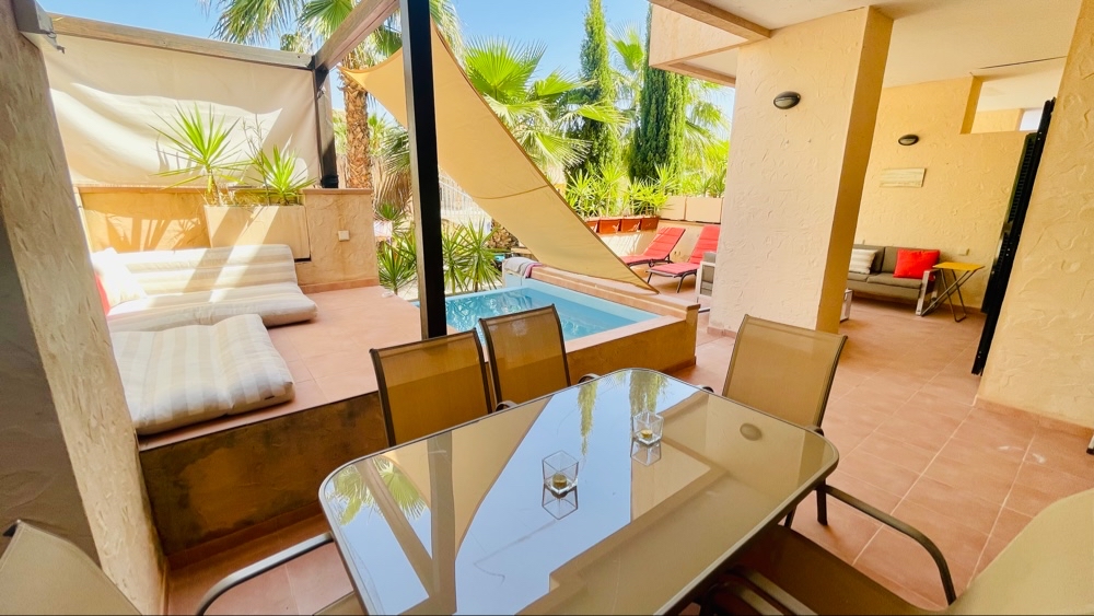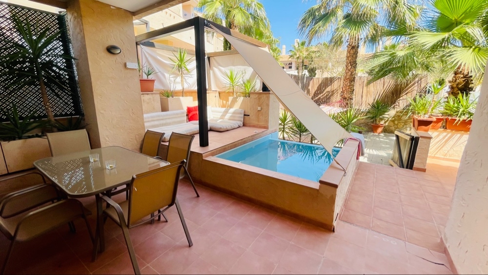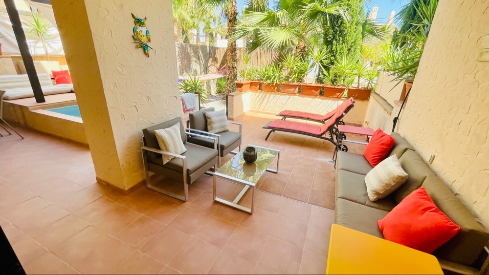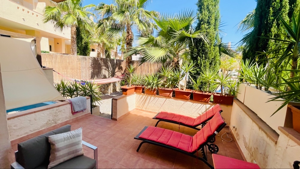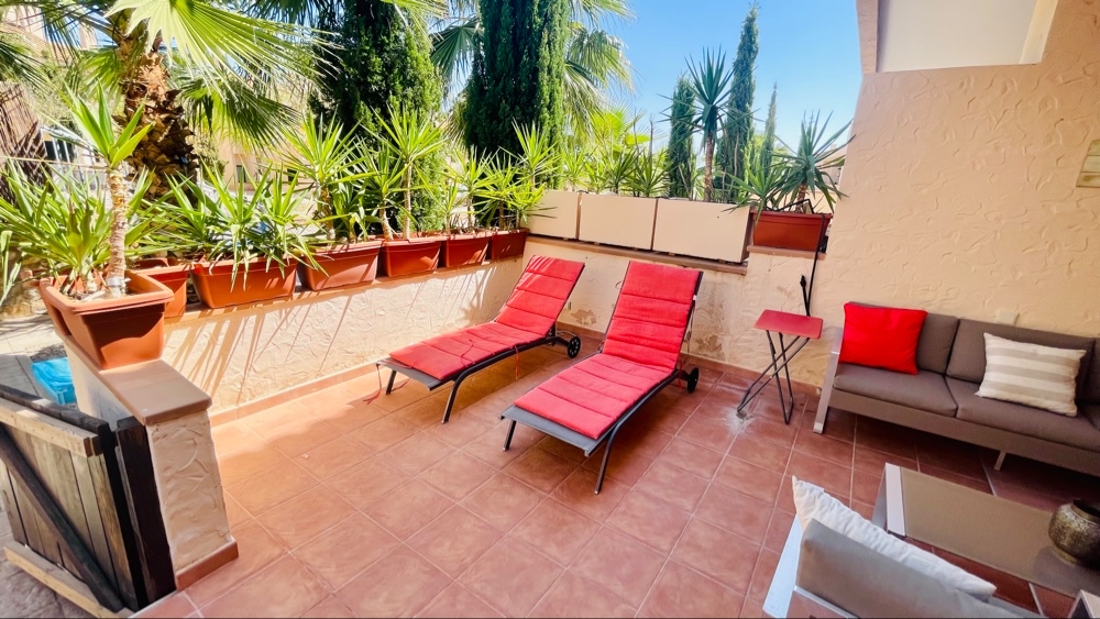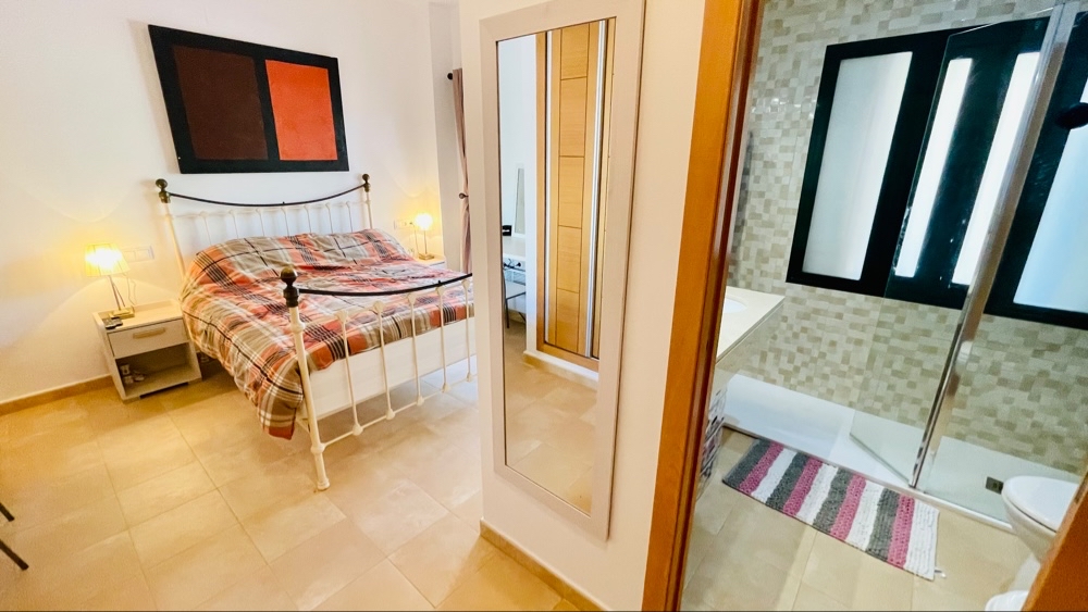 2 bed and 2 bath property, second bedroom split into two single rooms. Master ensuite with recently retiled walkin shower.Nicely maintained property with Spanish village just a short walk away. Splash pool and garden area plus 40sq.m of terrace.  Viewing Essential!