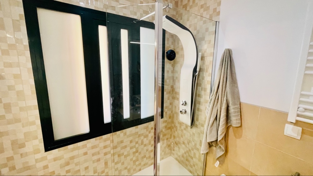 From the dining area, wooden panel door opens to the bedroom corridor giving access to a large en suite bedroom, bath tube replace with a walkin shower.