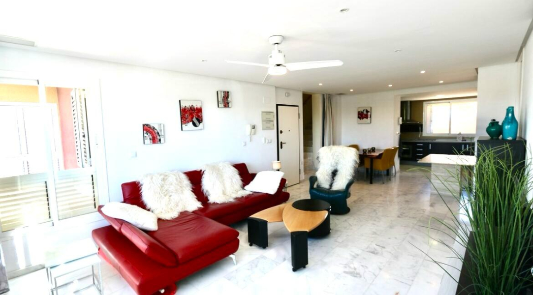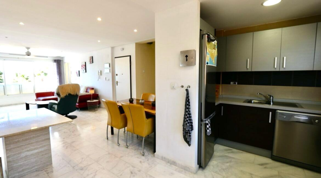 Re-sale Penthouse in Los Olivos, 2 bed and 2 bath, large open plan lounge and dining area with semi open plan kitchen. Internal stairs to private solarium with pergola. Underground parking and Storeroom. Marble floors throughout.