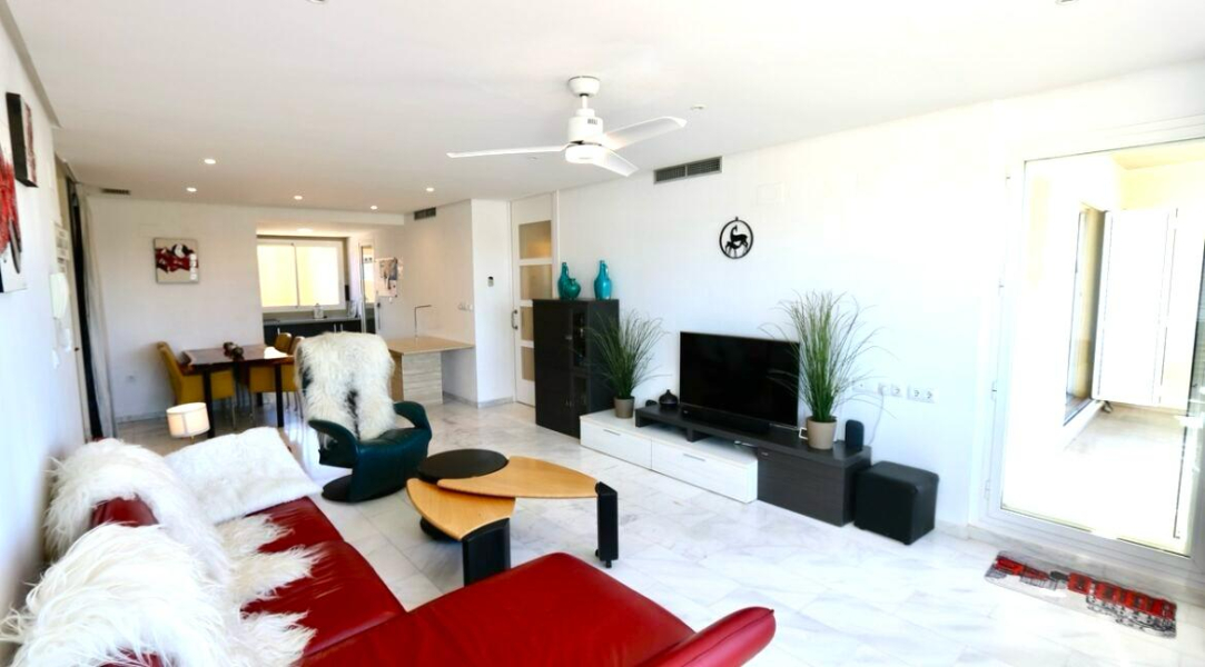 Unfurnished Re-sale Penthouse in Los Olivos, 2 bed and 2 bath, large combined lounge and dining area with semi open plan kitchen. Internal access to private solarium with pergola. 2 good sized bedrooms with built in wardrobes, underground parking and storeroom.