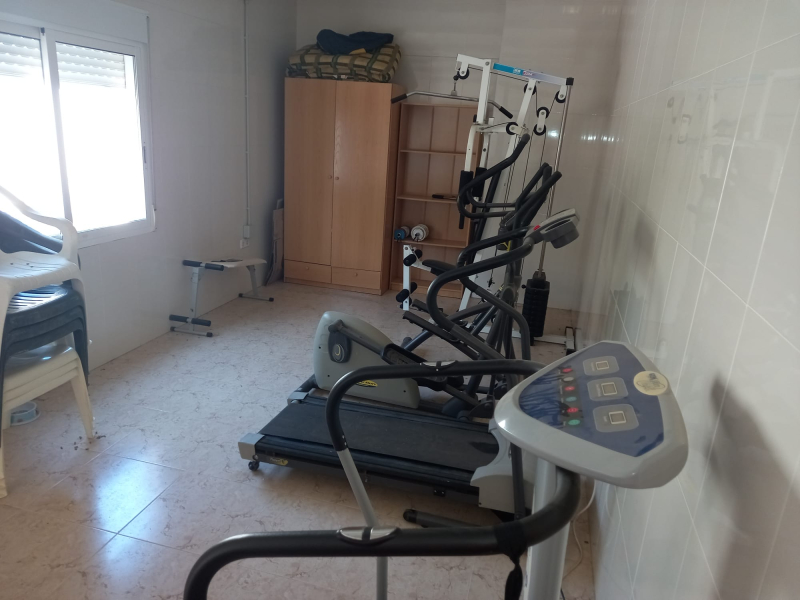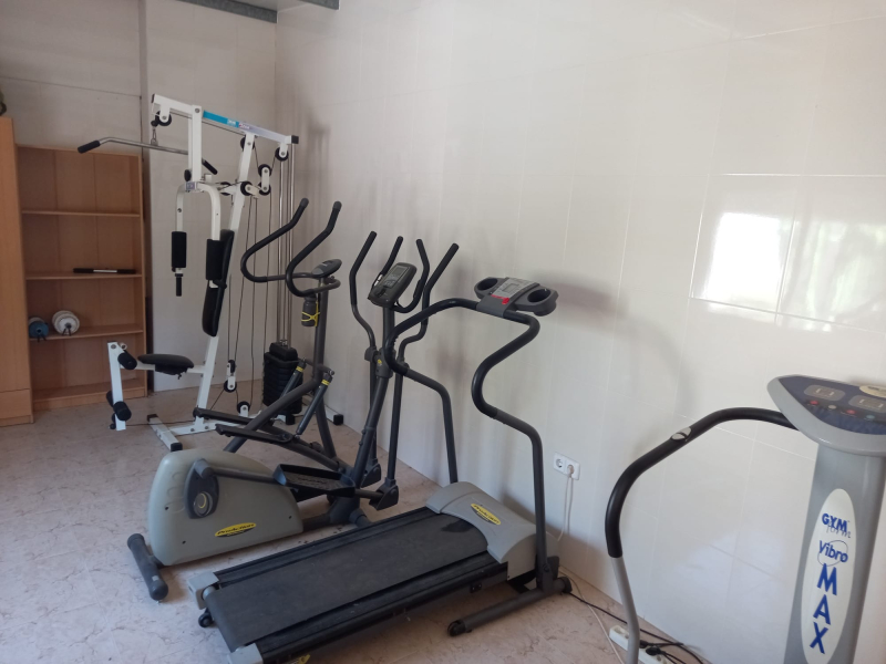 small mini fitness room in the garage