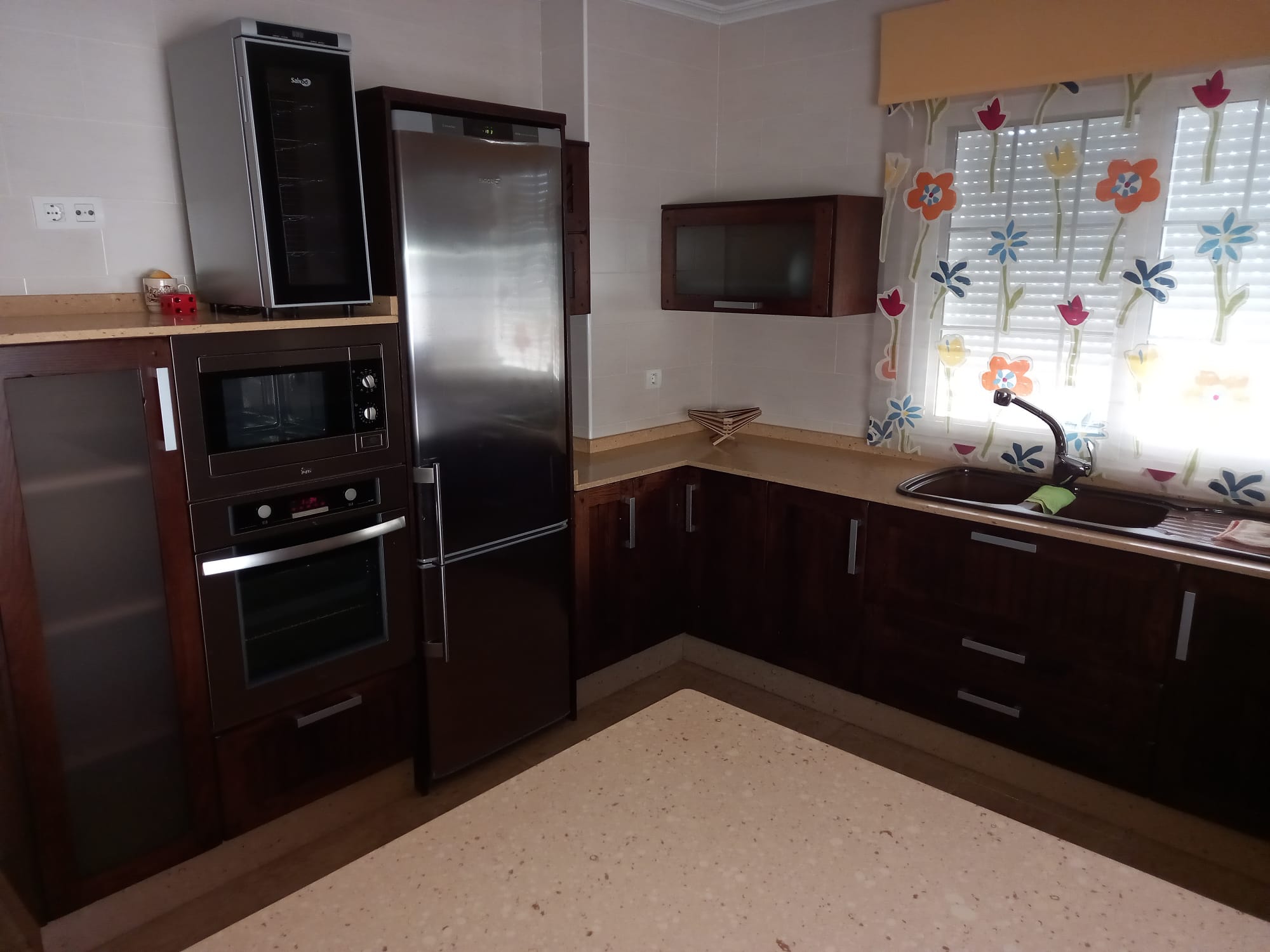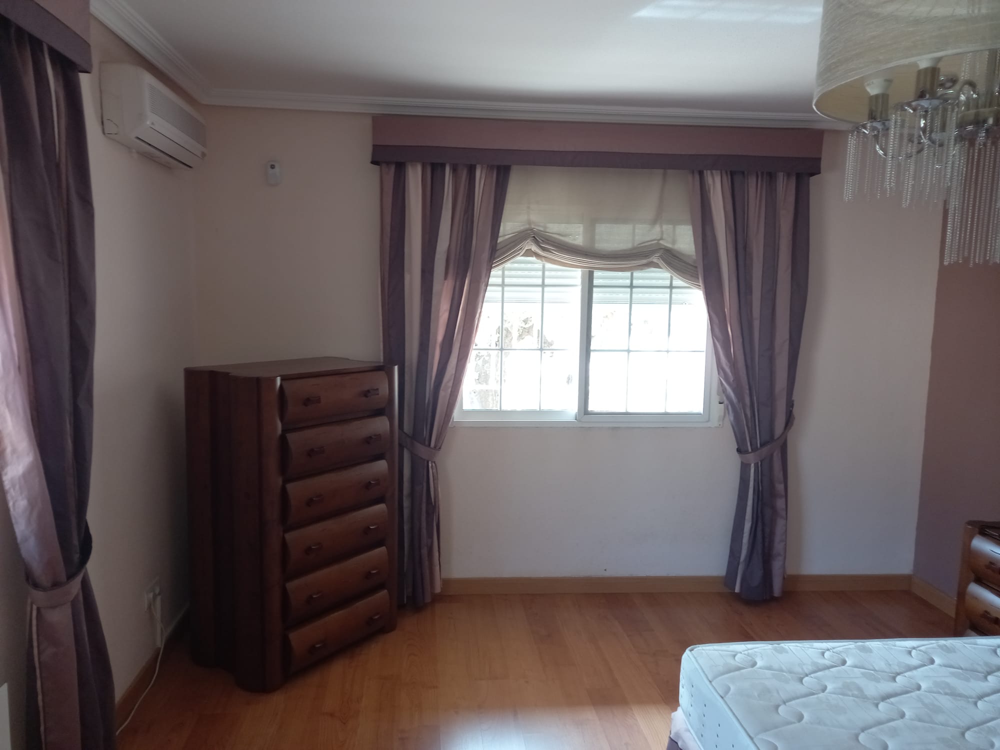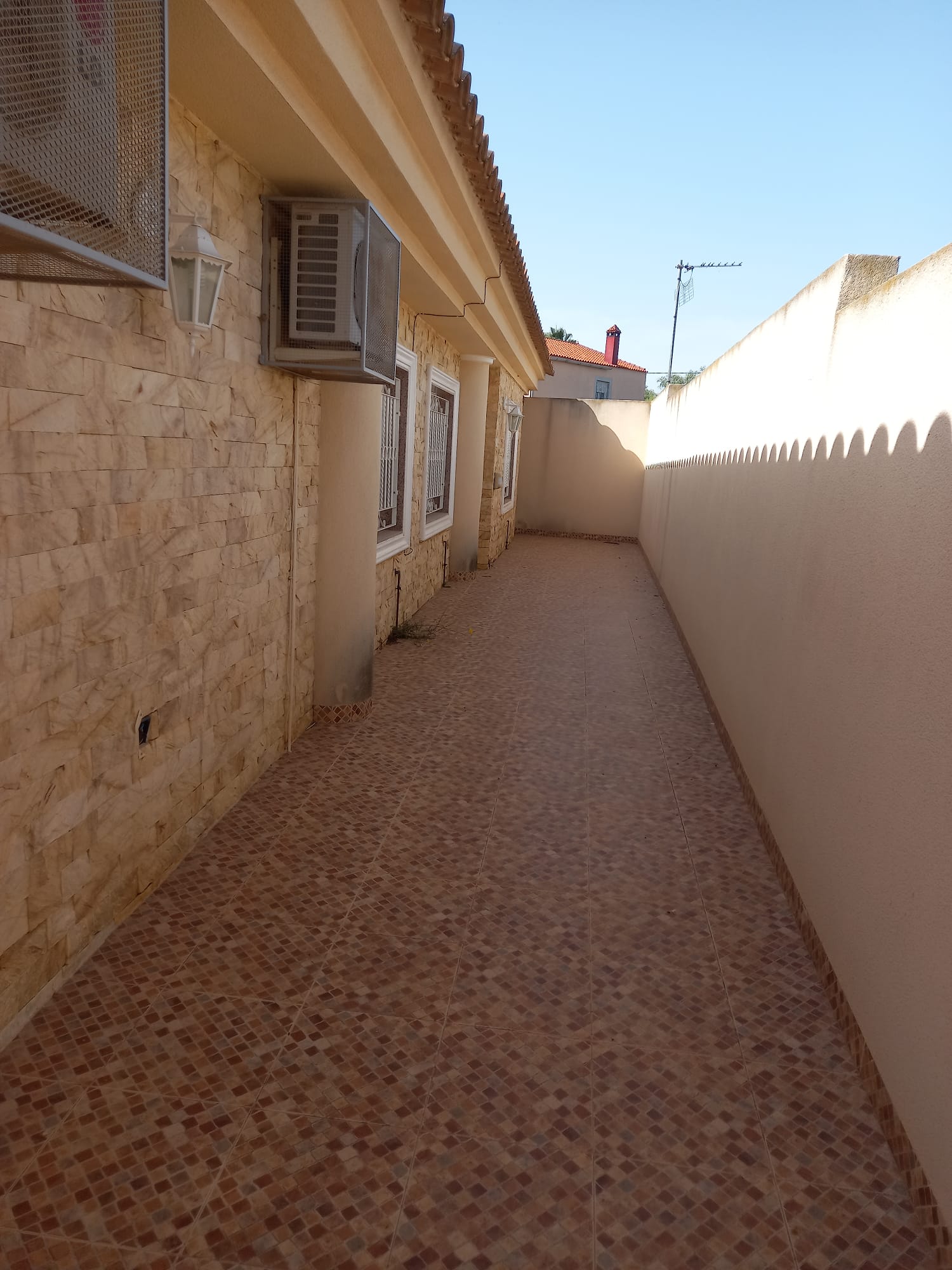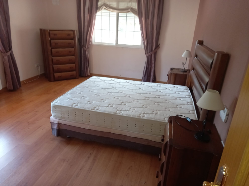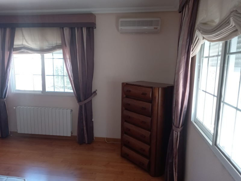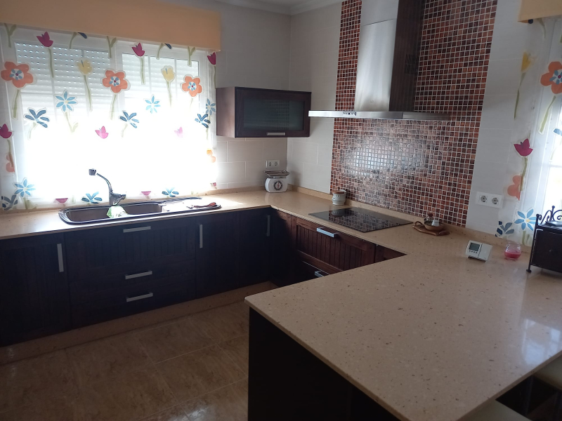 The villa is set in a 1700 m2 plot and the villa itself is 180 m2. The property is completely walled with electric double gates, pedestrian entrance and access to an enormous garage for at least 3 cars and a separate room within garage with fitness suite. The garden is planted with olives and various other trees and plants. There is a 13.5m x 6m swimming covered pool with Roman steps and ladder. Outside is all a well for irrigation and pool water. The villa itself has a large covered front terrace leading to a hallway. Off to the left is a very large fully fitted kitchen with breakfast bar and kitchen table and a laundry room with washing machine, tumble dryer etc. To the right is a beautiful lounge/dining room. The hallway leads to 5 double bedrooms and 2 modern bathrooms, one with shower and one with bath. At present 2 bedrooms are being used as study and office. The villa has air conditioning and oil central heating throughout. Apart from the kitchen, the floor is all parquet. The villa comes fully furnished. All this for the unbelievable price of 300,000 Euros.